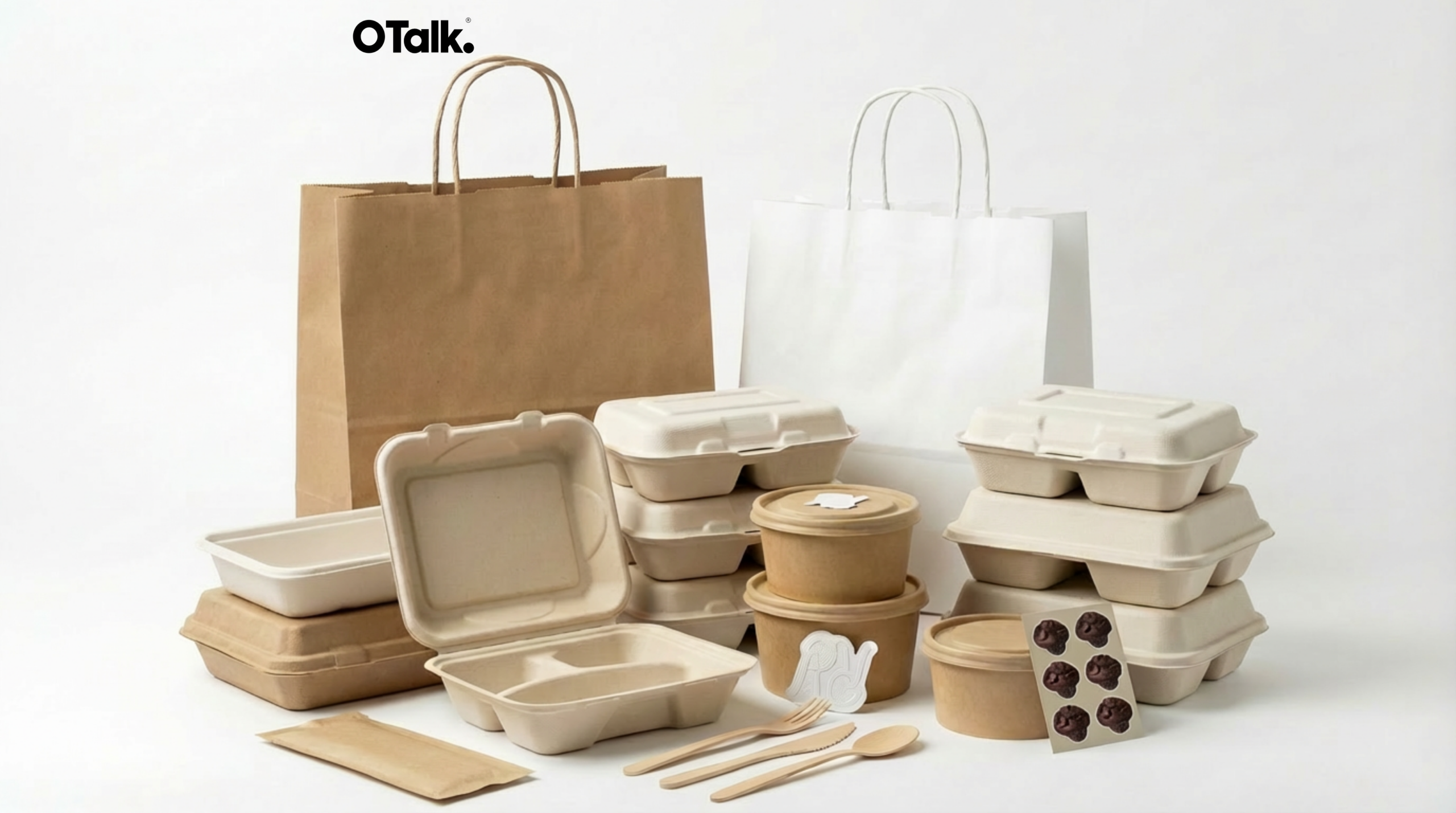 Instead of managing separate vendors, OTalk integrates biodegradable tableware, FSC paper bags, and custom branding seals into a single, cohesive supply chain. We help global brands consolidate orders and unify their identity.